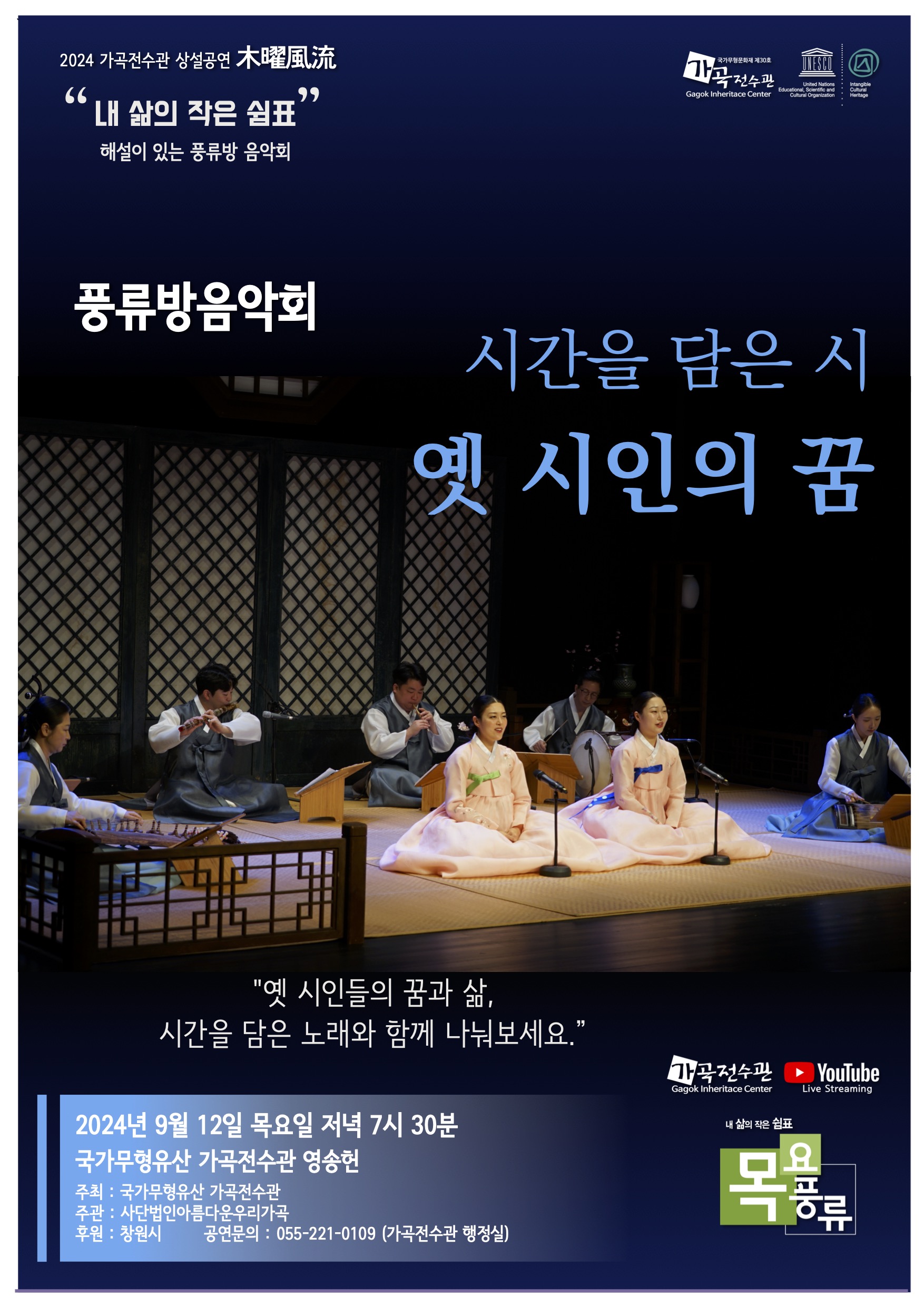 | [공연안내] 풍류방음악회 '시간을 담은 시, 옛 시인의 꿈' (0) | 2024.08.30 |