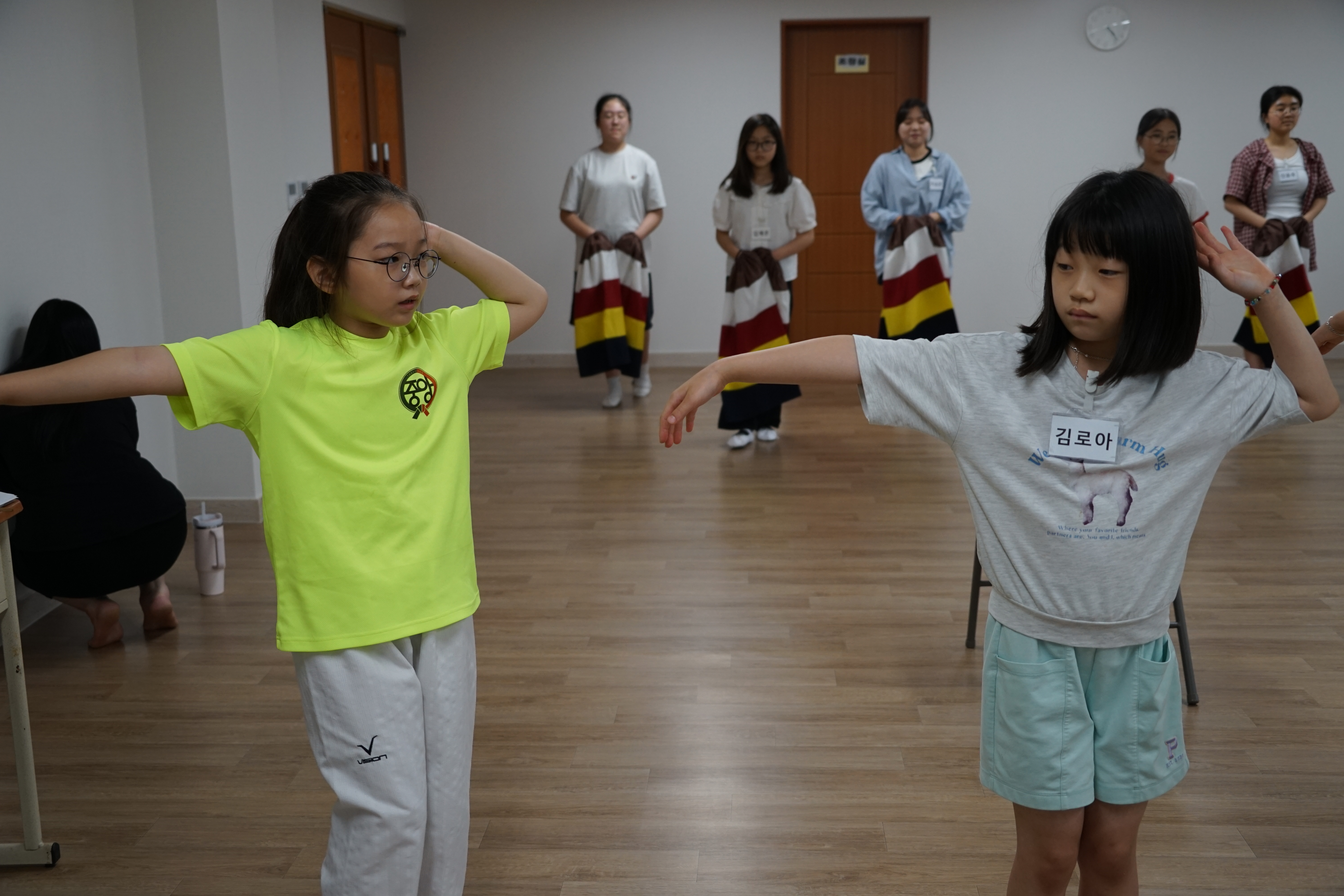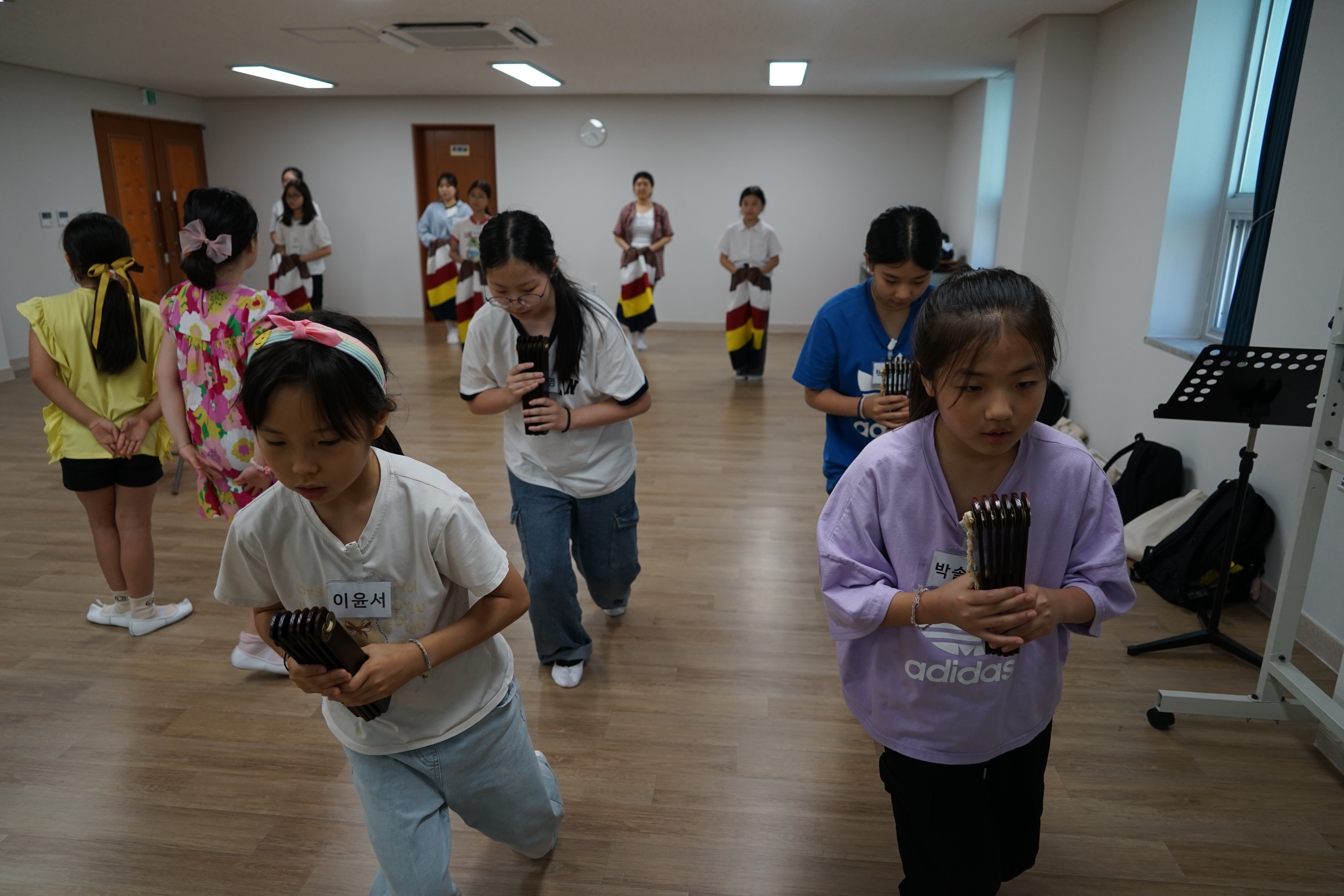 방금까지 마구 뛰어다니던 친구들이 정재가 시작하면! 집중하는 모습이 정말 보기 좋지요!!