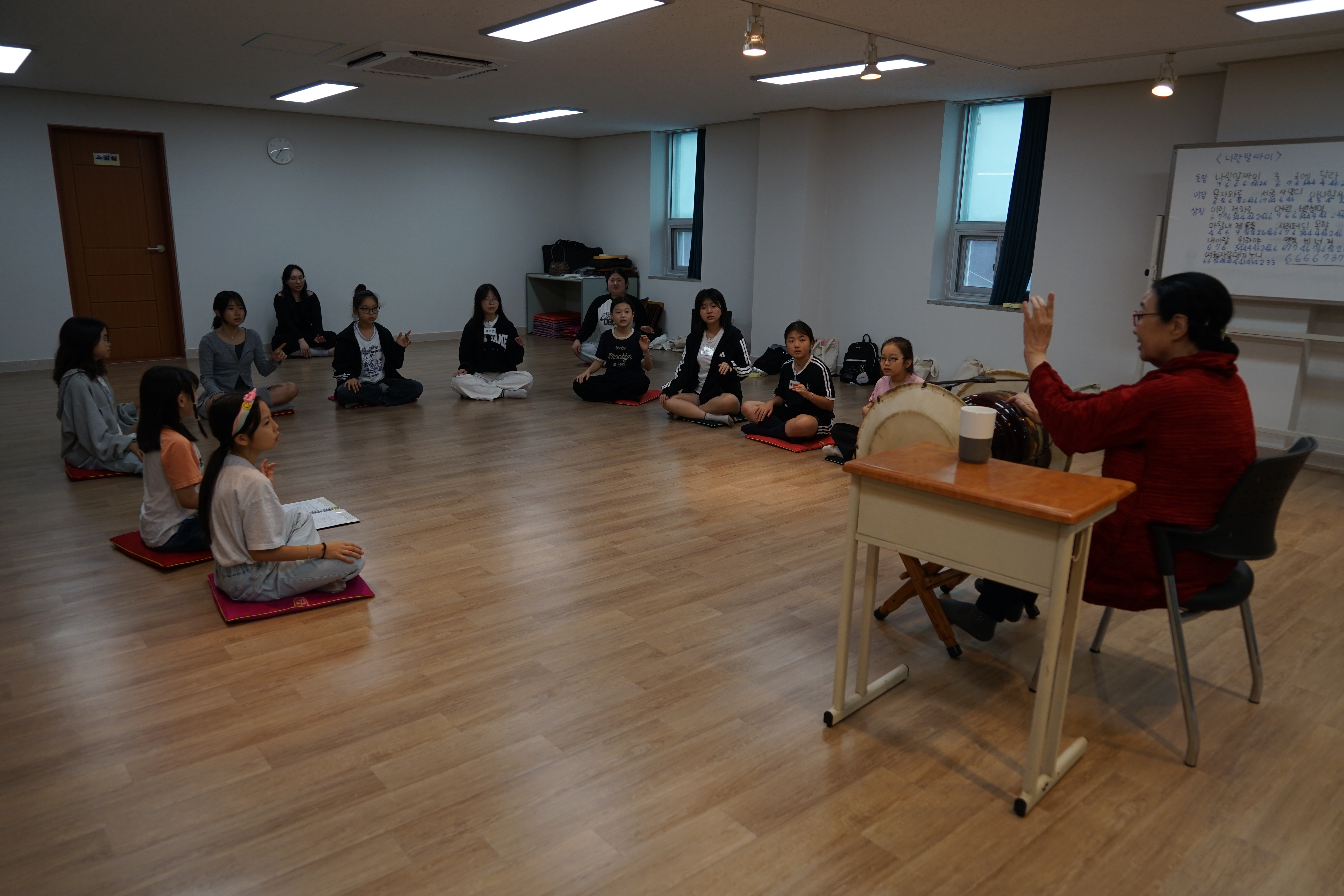 첫번째 시간은 할머니 선생님의 가곡 시간입니다.