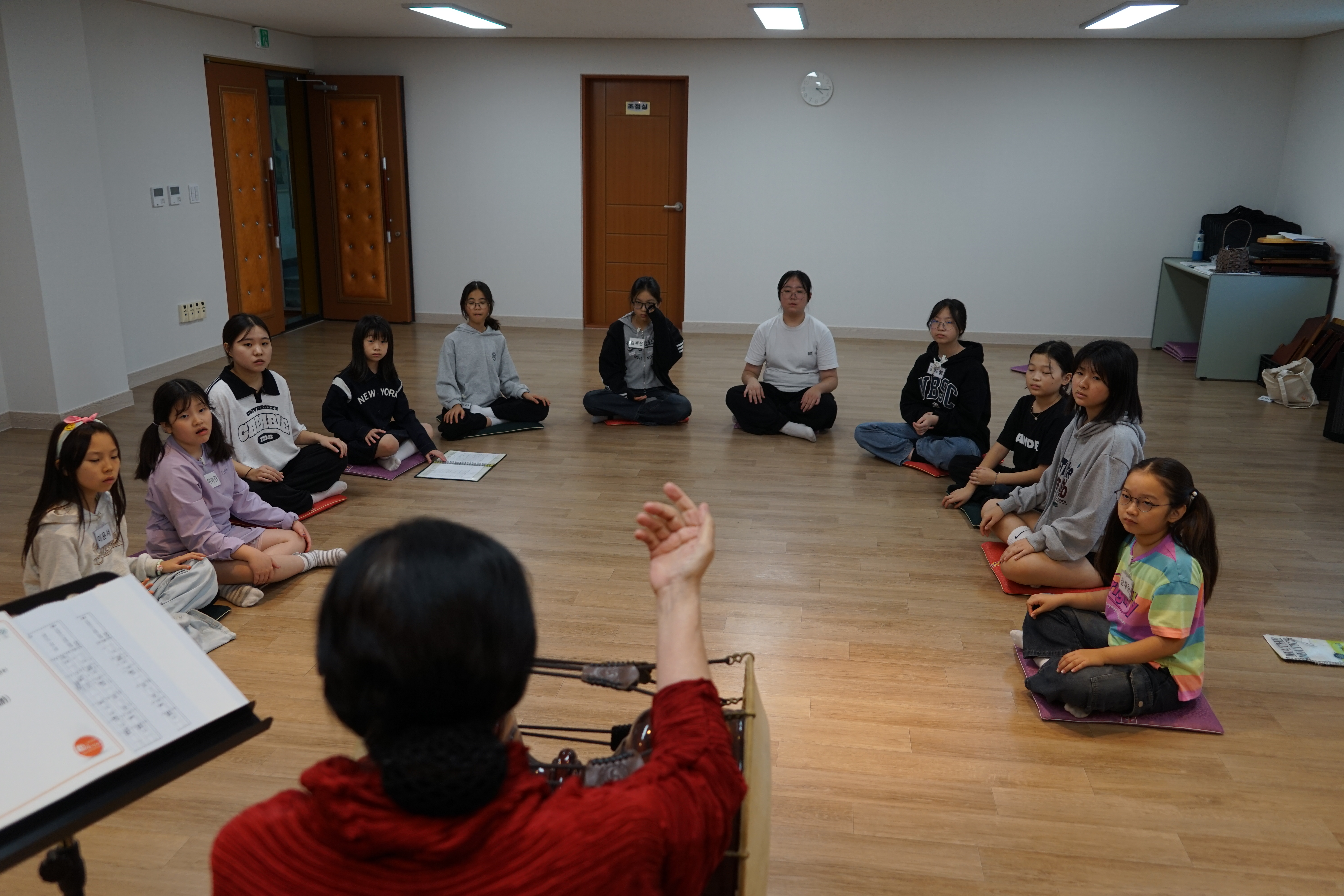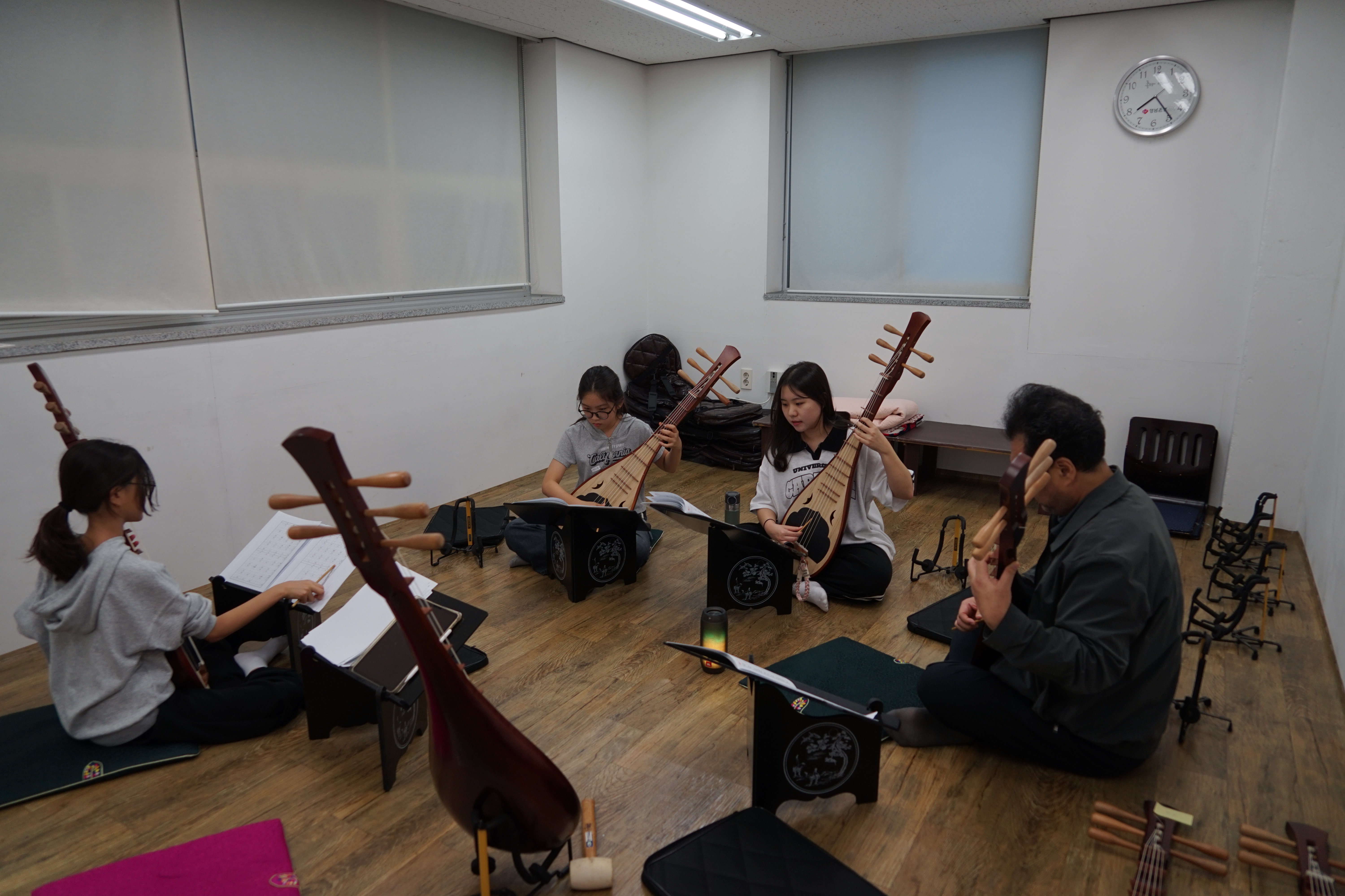 가야금 친구들은 계면조 편삭대엽 훈민정음 서문을 가야금 병창으로 부르기 위해서 노래도 하고 가야금도 연주하며 열심히 연습중이고, 향비파 친구들은 천년만세 연주를 위해 손가락을 부들부들 떨며 연습중이랍니다.