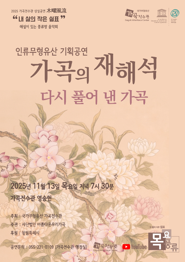 | [공연안내] 인류무형유산 기획공연 '가곡의 재해석' (0) | 2025.11.05 |