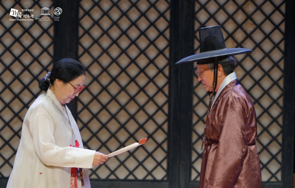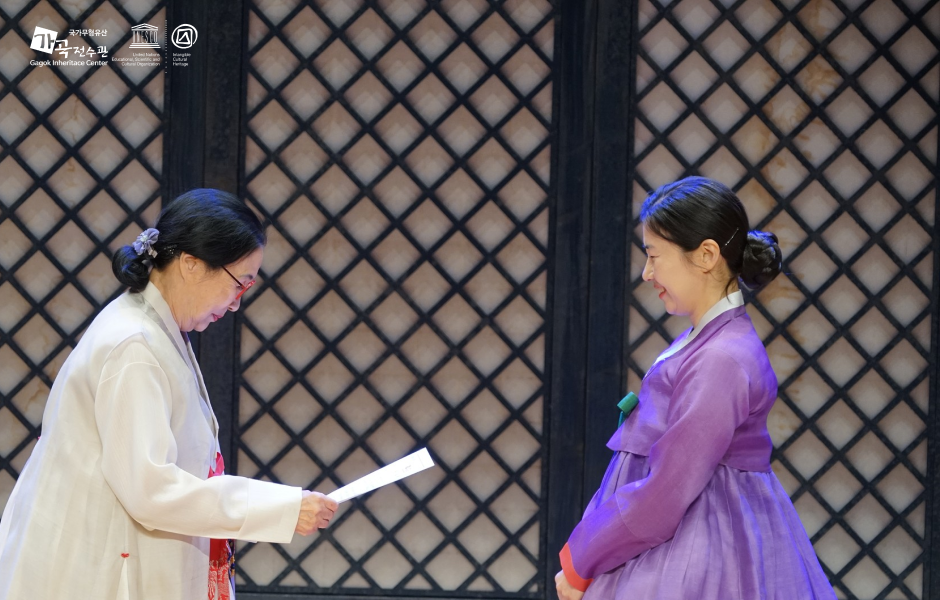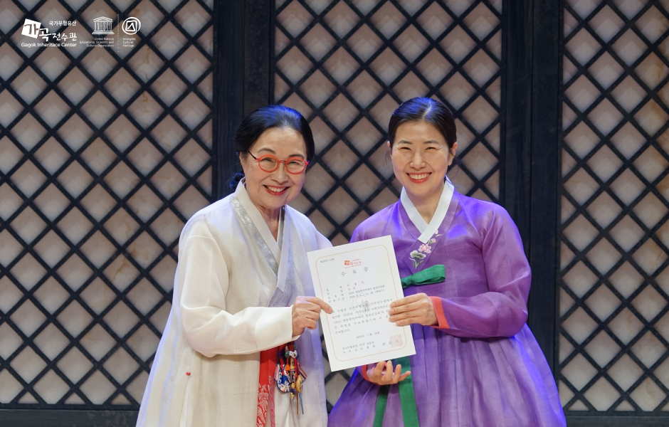 매년 상.하반기로 나누어 수업을 하고 마지막 수업에는 가곡전수관 공연장인 영송헌 무대에서 결과발표회와 수료식을 진행하는데요.